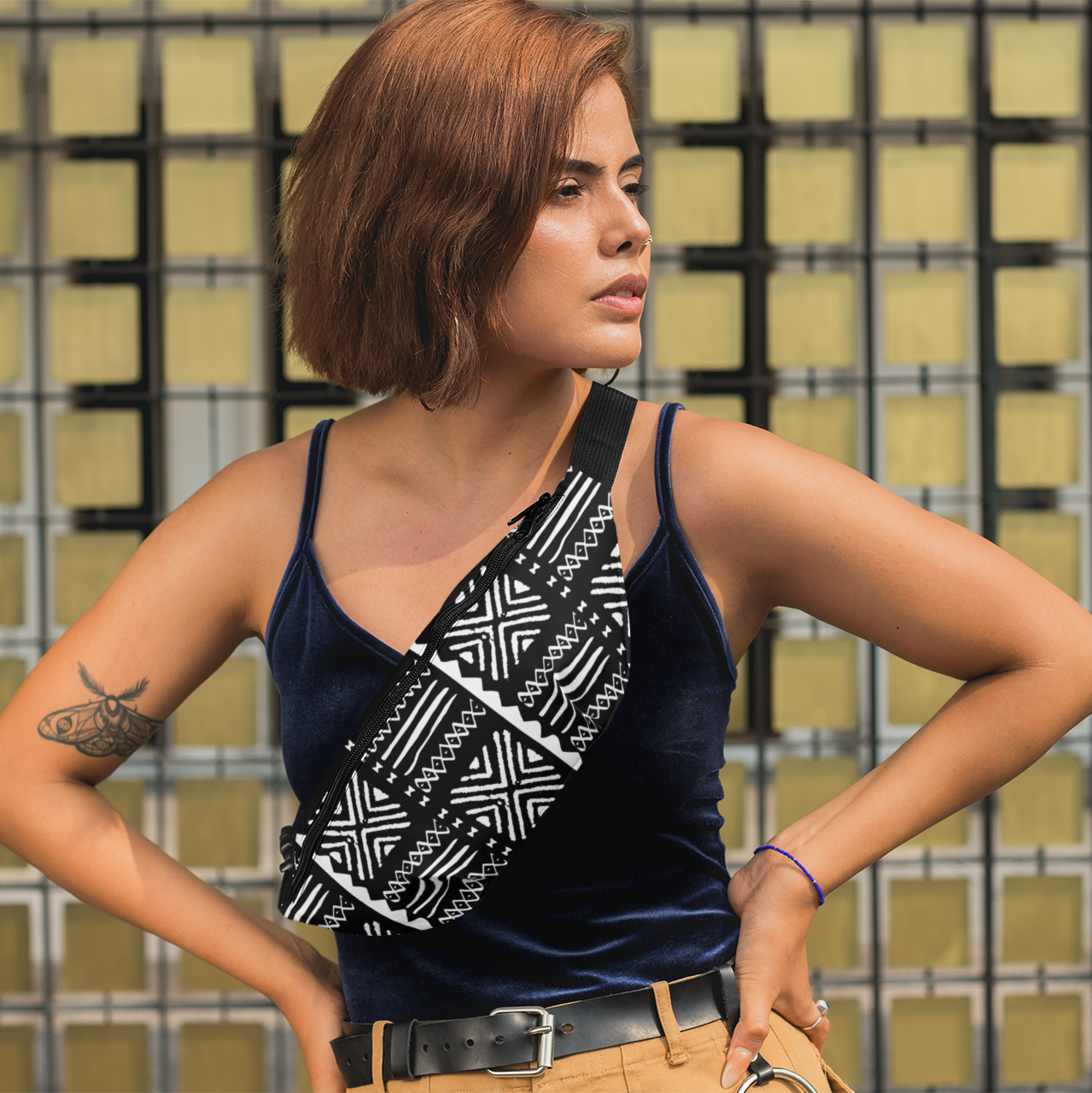 This modern belt bag exudes both style and cultural pride. Its sleek, compact design ensures you can carry your phone, keys, lip balm, and travel documents effortlessly, making it the perfect companion for daily use or travel. More than just a bag, it's a fusion of practicality and rich tradition, offering both functionality and flair. Featuring sturdy alloy hardware, a zipper closure, and an adjustable weight length for a perfect fit, it makes life easier by keeping all items within arm's reach.